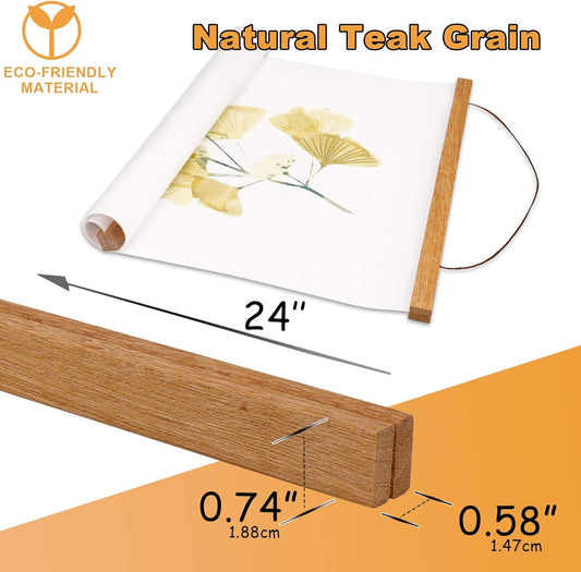 Magnetic Poster Hanger Frame, 24X36 24X30 24X16 24X18 Light Wood Wooden Magnet Canvas Artwork Print Dowel Poster Hangers Frames Hanging Kit (Teak Wood, 24")