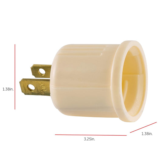 Polarized Socket Adapter, 2 Pack, Convert Outlets to Lamp Sockets, Perfect for Workshop, Garage or Utility Room, Polarized Plug, UL Listed, Light Almond, 54607