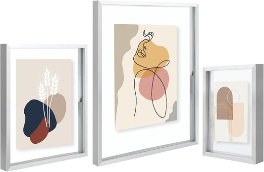 Silver Floating Picture Frame for 11X14, 2-8X10, 4-5X7 Photos, Metal, Modern or Contemporary, Wall Mount