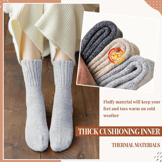 Women Wool Socks Thick Thermal Hiking Warm Winter Crew Cushion Cozy Work Boot Socks 5 Pairs